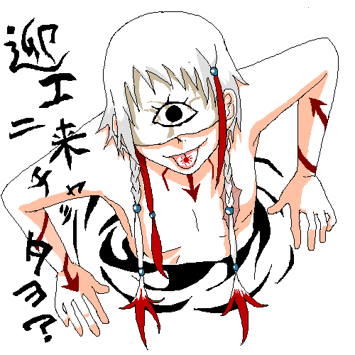 ◆やきまんじゅうさん◆こんばんは^^元ネタっすか?唯の落書きからグレードアップをば・・・あ、違ったらすいません;;確かに初めて見たら止めますね><ちゃんとズボンらしき物は穿いておりますのでご安心を!(違)でもきっとこれ以上壁から出てこないでガシッと掴んで引き込みます。逃げられたら特技のストーキングです(笑)素敵なツッコミをどうもです^^コメントありがとうございました!◆西さん◆こんばんは♪いやぁこの作品から漂うのは不審者感と焼き魚の煙だけですよ;;アジアン死神・・・なるほど、確かになんだか東洋(?)風ですね^^アメリキャン!うーむ・・・鼻が高くて金髪で・・・今度機会があれば是非描かせていただきたいです♪ボクのオリキャラ達は怪しい子ばっかなので吃驚されるのかも??目隠しの下は西さんの想像次第でございます!糸目でも垂れ目でも(笑)3時・・・!後ろの壁に気をつけてくださいね!!コメントありがとうございました^^ |