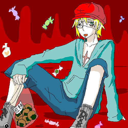 おぉぉぉぉ!!まさか描いてくれるとは思いませんでしたww ありがとうございますぅw すごく可愛らしい死神さんですw 帽子ギザかわゆすっ(!?) 個人的に思ったのは煎餅の袋・・てか煎餅まじ上手いですwなんか凄く美味しそうなんですけど^∀^ (ヨダレだらぁ〜) こんな可愛らしい少年を描ける徠月様が羨ましいですw
