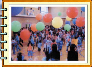 そして、体育館で直径1メートルの風船を飛ばして、空気の流れの実験をしたり、