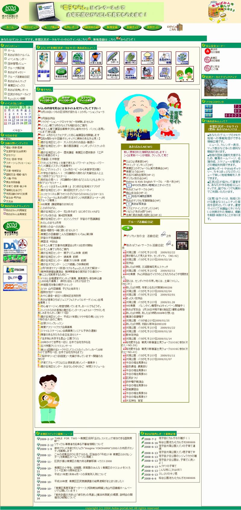 【あおばみん】から代表でご参加のTさんより、地域ポータルサイト【あおばみん】についてご説明に先立ち、代表ではなく技術担当との自己紹介があり、続いて順序立った説明がなされた。 【あおばみん】のサイト名は、「青葉区民」をもじったもので、大衆薬の「○○○ミン」のように親しみ易い名前としたのであるとのこと。 【あおばみん】サイトのシステム構築には、当初から十分な企画立案の基で発足し、民間の学識経験者(情報システムの有識者)と市民の有志、及び行政との協同作業で構築された事が伺われる。 また、地域ポータルサイトとして発足後の運用もコストは区役所負担が今も続おているとの説明である。 それだけに、ポータルサイトと銘打った組織構成、情報発信の基本的条件、ポータルサイトの実装技術、等可成り詳細にきめ細かく定められているようである。 その中でも、1.情報発信の主体は登録団体、2.地域コミュニティとしての情報発信、に比重を置いた運営を推進されているとの印象を受けた。 (shiba ) |