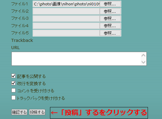 全て入力が終わったら、「投稿する」をクリックします。尚、必要に応じて「確認する」ことも出来ます。 |
