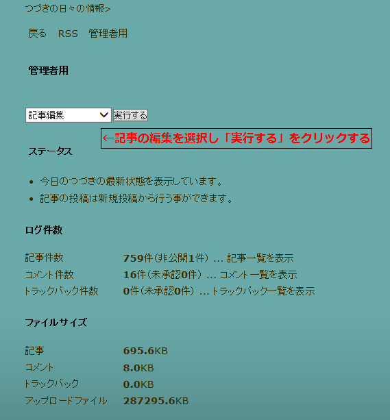 「記事の編集」を選択し、「実行する」をクリックします。 |