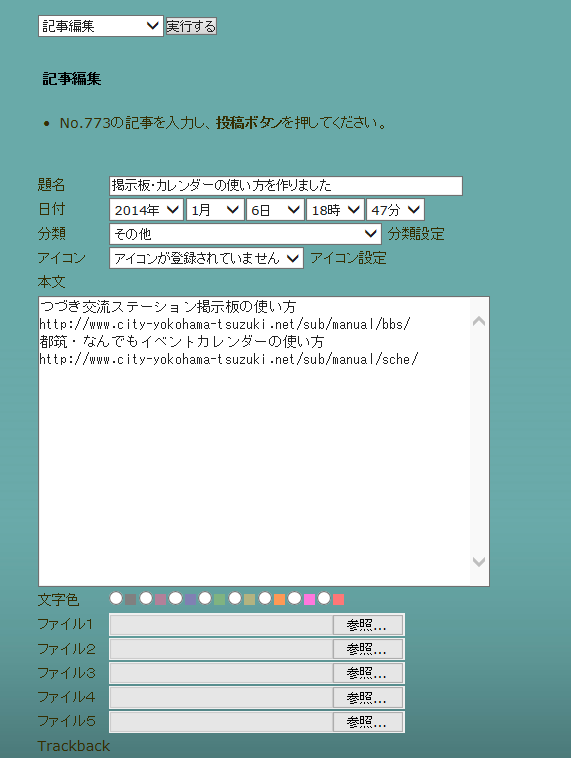 「編集する」をクリックすると下図のような画面が現れますので、修正・追加します。「投稿する」をクリックして完了です。 |