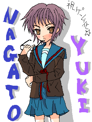 ながとサンですねvv めがねをはずした、ちょっと気の強そうな、でもなにかと不器用そうな雰囲気がすごく表されてると思います^−^ 最初は、ながとってなんだか狙いすぎなキャラさんだなー思ってたのですが、だんだん・・・(うまい物語ですな〜(何)) ウチのほうはライトのベルではなく、ぢつはにこにこやYOUTUBEでハルヒを見ています。ちょと見ただけですが、それでもだいぶハルヒ毒が回ってきました=3=3 これ面白いです〜。ちなみに、らきすたはまだ映像を集めてるだけなのですが、どーもこれもネタ満載のようですね=3=3=3 |