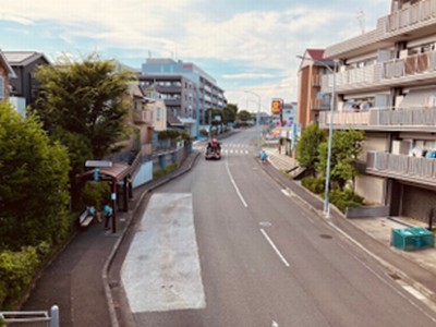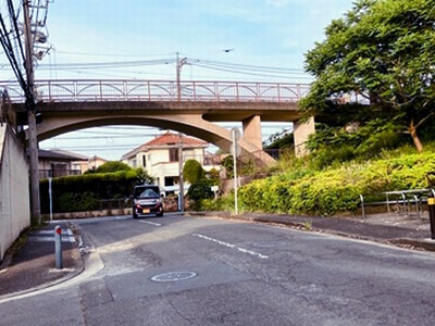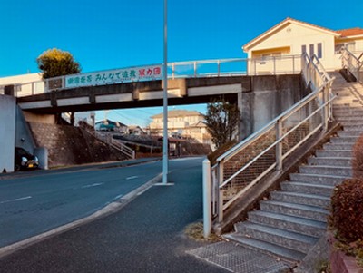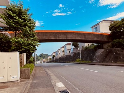 | 駅から歩道橋を渡り横断歩道際から見た川和町駅歩道橋 |