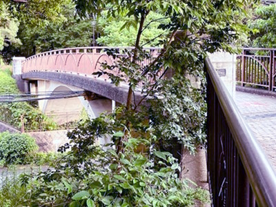 月出松公園橋:アーチ形の歩道橋と緑道の終着点