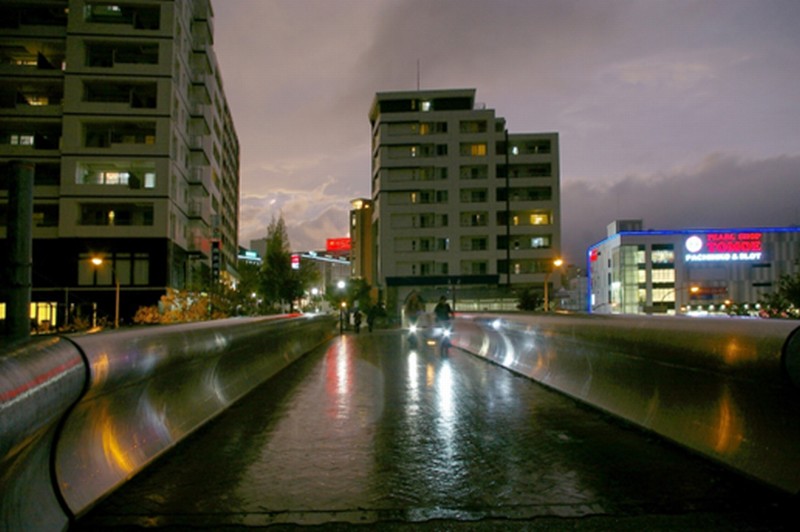 | であい橋全景 この橋左側の下がスキップ広場のステージ |