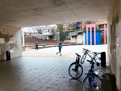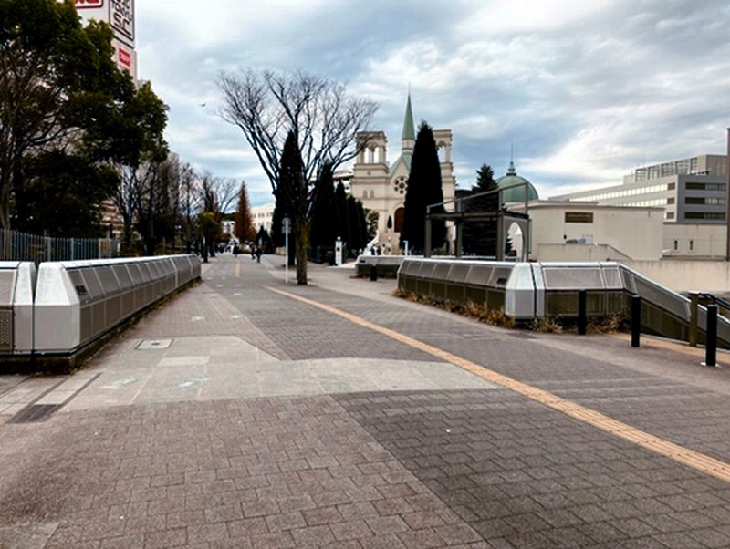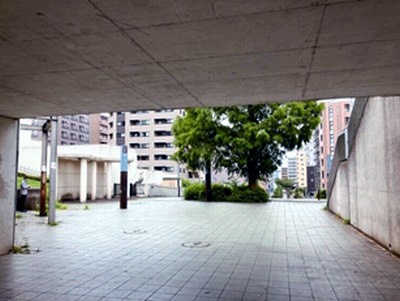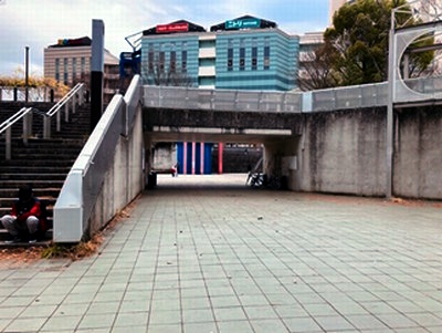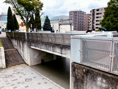 | であい橋トンネル越しのスキップ広場 |