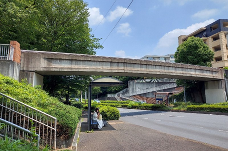 この歩道橋は、新羽・荏田線のルート上に架かる歩道橋である。橋の北側は折田不動公園の一部となっており、南側は戸建て住宅や集合住宅が立ち並ぶ住宅街となっている。