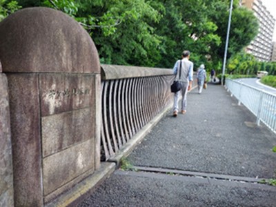 せきれいの道を早渕川に向かう方向から橋を見た |