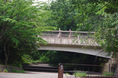 緑道「ささぶねのみち」の中に、大原みねみち公園という公園が存在する。公園内には小さな池があり、その上には小さな石橋が架かっている。