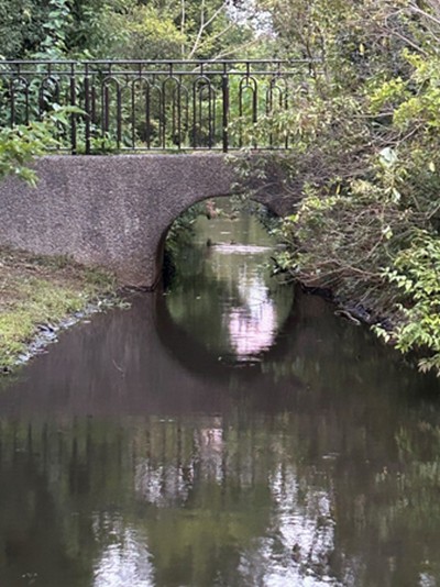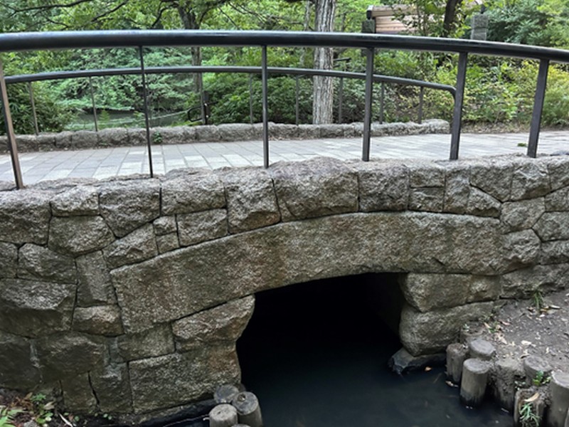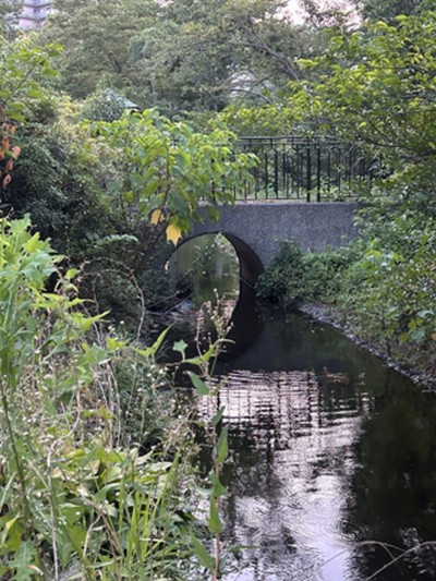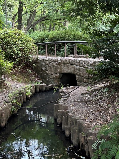 茅ケ崎公園の小さな石橋:緑道からの流れ