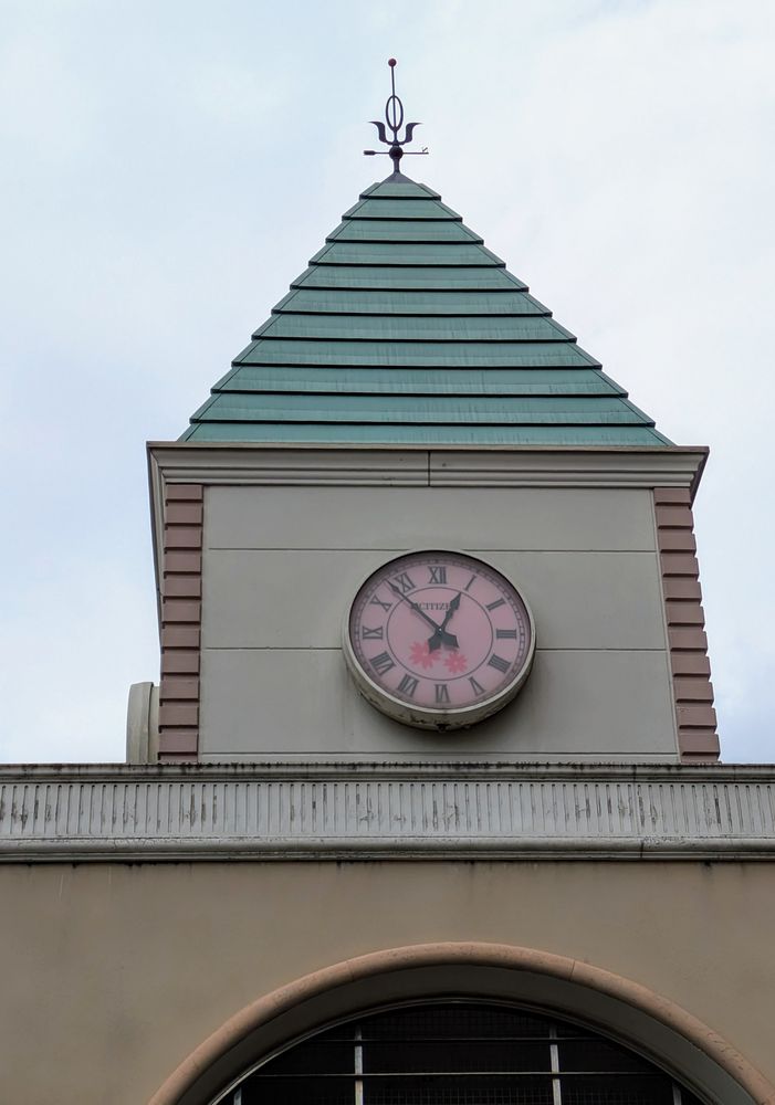 山田富士が桜の名所だったので、時計台や通路に桜の模様が使われたと思われる。