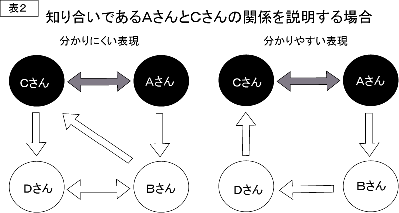 例)知り合いであるAさんとCさんの関係を説明しようとする場合 ☆ 分かりにくい例 ☆ 分かりやすい例 |
