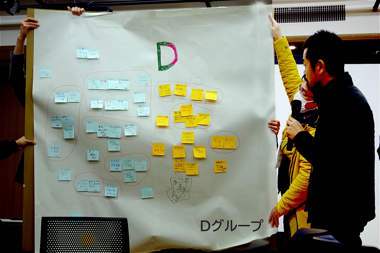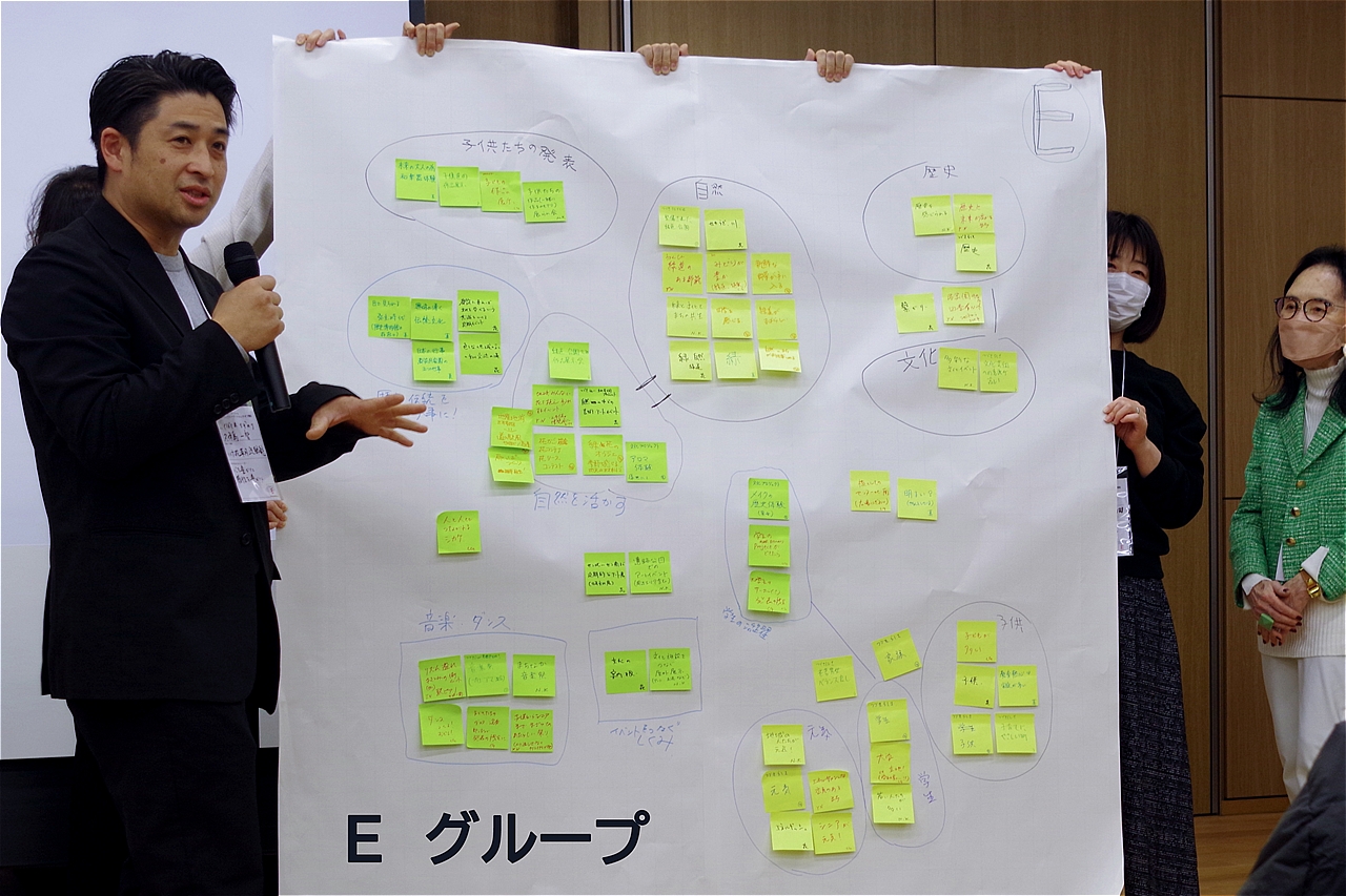 A〜Jグループまでの10グループ分かれ、80名の熱気あふれるディスカッションが始まり、その後グループごとの素晴らしい発表会がくり広げられ、皆さんの「街への想い」がより鮮明に伝わった発表であった。