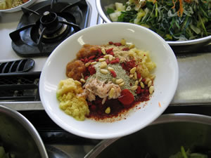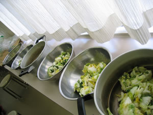 ![]() 地区センターの料理室のボールやお鍋は大きくて、 とても使いやすかった。 ボール1つが1人分。 |