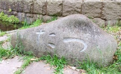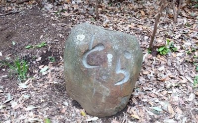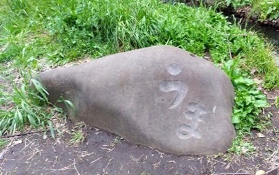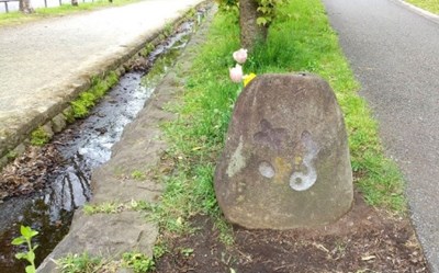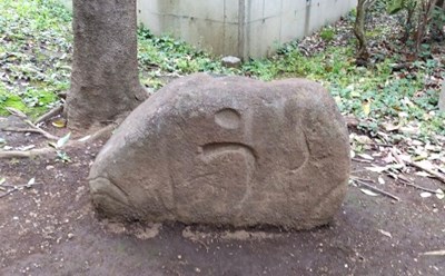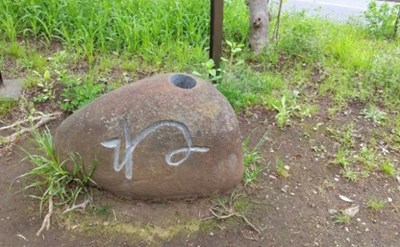 「ふじやとのみち」はニュータウンで最初に整備された緑道。2.5キロメートルもあり長いので、緑道利用者の道しるべとして12の干支の石を置いた。福島県三春町の自然石を使っている。