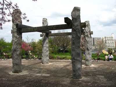 由来:縄文前期、中期、弥生時代の遺跡が1997年に発掘された。公園の頂上には、縄文をイメージしたような四本の石柱モニュメントが立っている。この石柱は公団の資料によれば「石柱パワボラ」(作者不明)という。1998年に区画整理事業として公団が作り、横浜市に移管され、現在に至る。当時は、東屋的で藤棚のようになっていて日陰を作っていたが、現在は、石柱に組まれていた木は腐食して取り除かれている。山頂には石柱が作られたのと同時期に桜の木も植えられ、現在は桜の名所にもなっており満開時には沢山の人が花見に訪れ都筑区の名所となっている。