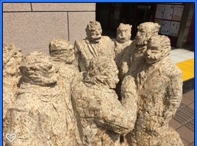 由来:四国在住の彫刻家である零駒無蔵(ぜろこまむぞう)氏が創作した「集う人達」という石像である。