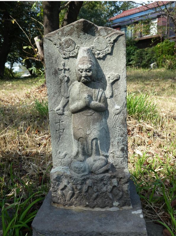 写真の青面金剛は、ショケラを持っており、また、頭の後ろに頭光があるのが非常に珍しい。青面金剛は、庚申講の本尊として知られ、三尸(さんし)を押え神とされる。