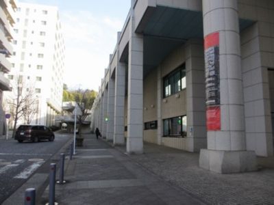 左側都筑区民文化センター(仮称)・右側ボッシュ本社区役所通りからの外観