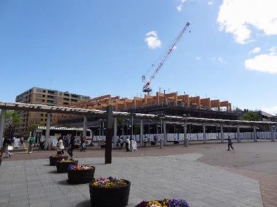 ビルトインタイプの観覧車(駅前芝生広場より)