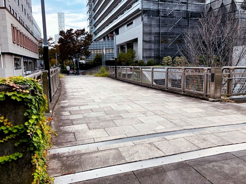 | であい橋全景 この橋左側の下がスキップ広場のステージ |