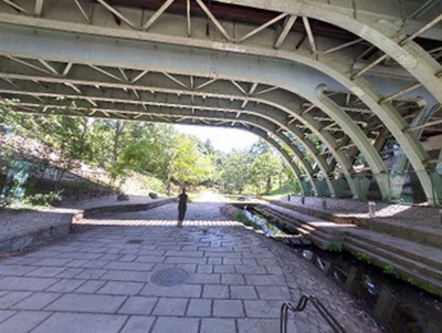 並木歩道橋:公園と緑道、駅を繋ぐ明るい上路橋
