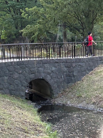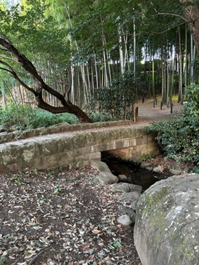 茅ケ崎公園の小さな石橋:緑道からの流れ
