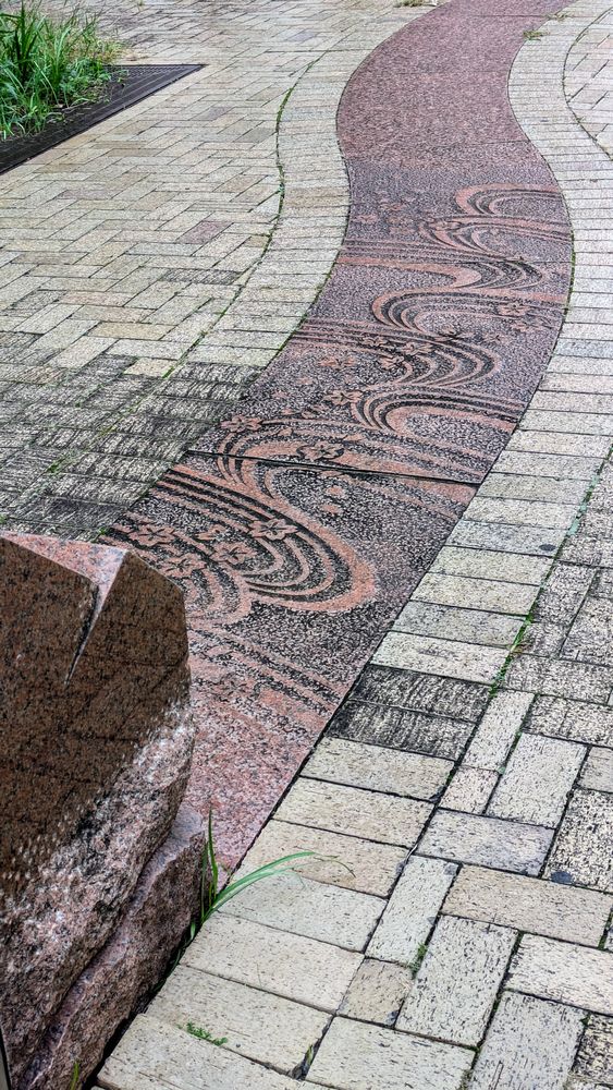 山田富士が桜の名所だったので、時計台や通路に桜の模様が使われたと思われる。