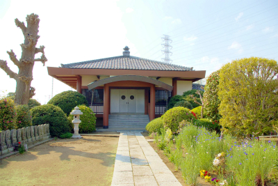お寺は、グリーンライン「川和駅」から7分ほどのところにあり、寺の前の細道からすぐに、小稲荷と庚申塔が足下にある名木の無患子(むくろじ)の大木が畑の中に残り、昔を偲ぶよすがとなっている。
