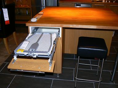 IKEAに行ったら、まず2階のショールームに足を運ぶといい。通路の右側はルームセッティング、左側にはそれに関したプロダクツが置いてある。リビングルーム・リビング収納・玄関家具・オフィス家具・キッチン・ダイニング・ベッドルーム・ワードローブ・バスルーム・キッズの順序で、ルームセッティングがしてある。その数なんと69。いかに、ルームセッティングに力を入れているかがわかる。 広さ55平方メートルの2LDKをまるごとセッティングしてあるコーナーもあった。生活に密着したインテリアのアイディアが具体的に提示されてあるので、わかりやすかった。 ルームセッティングのベッドに寝転がることも出来るし、ソファにふんぞり返ることもできる。子ども部屋ではピョンピョン跳ねることもできる。戸棚を自由に開閉してもいい。ダイニングのテーブルにセットされたアイロン台(左上)を見せてくれたが、自由に開閉しなければ、こんな装置があることもわかりにくい。「どんどん触って下さい」と話していた。地元の店舗経営者のニーズに応えるために、スモールビジネスのルームセッティングもいくつか用意してあった。喫茶店・インターネットカフェ・イベント会社・美容院開設に必要なグッズは、すべてIKEAで整えることができる。左写真は美容院のルームセッティング。