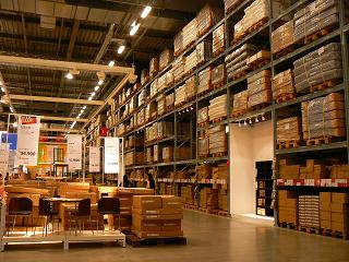 扱っている商品は1万点にも及び、カラーバリエーションも含めるとその何倍にもなる。もちろん国や地域によってヒット商品は多少違ってくる。日本の船橋と港北を比べた場合でも、売れ筋は少し違う。毎年25%ほど新商品が作られ、8月発行の新しいカタログに掲載される。 イケアのすごいところは、すべてのアイテムが高い品質・良いデザイン・手頃な価格を目指していることだと思う。矛盾しているように思えるこの3つを実現するために、原材料調達先の検討、サプライヤーの検討、大量仕入れによるコストダウンをはかるなど、さまざまな工夫をこらしているそうだ。 なかでも、客が自分で棚から商品を取り出し、持ち帰り、組み立てるという独特のセルフサービス方式が、安い価格を実現させている。 2階のショールームで商品をチェックする→1階のセルフサービスエリアの棚(左)から商品を取り出す→フラットパックというコンパクトな梱包になっているので、自家用車などで持ち帰る→設置・組み立てを自分でする。 組み立てが苦手な人、自家用車を持っていない人のためには、別料金で代行サービスも行っている。
