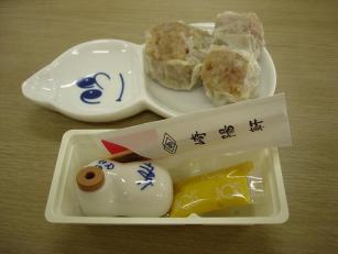 崎陽軒本社は、横浜の西区高島にある。本社マーケティング部の大川さんが、2時間半に及ぶ取材に対応してくださった。 崎陽軒は、明治41(1908)年に、横浜駅(現在の桜木町駅)構内の営業許可を得たのに始まる。およそ100年の歴史を持つ会社だ。都筑区(当時は港北区)に、シウマイ製造工場(シウマイセンター)ができたのは、昭和50(1975)年。今の工場は、平成15(2003)年3月に、リニューアルされたばかりである。パートを含め、300名ほどの従業員が働いている。 シウマイ類は、崎陽軒の総売上の46%を占める主力商品だ。そのシウマイ製造を一手に引き受けているのが、この工場である。他に点心(中華まん・月餅)も作っているが、全体に占める割合は、4%。 幕末まで寂しい漁村だった横浜には、老舗の名物が、ほとんどない。その中にあって、「崎陽軒のシウマイ」は、横浜名物として知れ渡っている。横浜名物を作る工場が都筑区にあるだけでも、区民には「お宝」だ。 リニューアルした時に、見学コースが作られ、見学者を受け入れるようになった。食の安全性が求められる今、見てもらうことが安心感につながると考えたからだ。木曜・金曜・土曜の午前と午後に、見学できる。詳細は、045-472-5890まで。非常に人気があり、だいぶ先まで予約で埋まっているという。 大正4(1915)年に弁当も売り始めたが、横浜には、小田原のかまぼこ、静岡のわさび漬け、浜松のウナギのような、独自の商品がない。 「崎陽軒にも、横浜名物と言える物が欲しい」。当時の社長は、真剣に考えたという。 横浜南京街(今の横浜中華街)で突き出しに出される「シューマイ」に目をつけた。しかし、このシューマイは、冷めると、食べられる代物ではない。弁当にするには、冷めても美味しくなければならないのだ。 まず、南京街の点心職人・呉遇孫をスカウト。社長みずから調理場に立つなど社員一丸となった結果、「冷めてもおいしいシウマイ」作りに成功した。昭和3(1928年)3月のことだった。それ以来80年近く、この味と製法を守り続けている。赤箱のデザインも、当時と同じものを、今も使っている。左上の写真は、工場の見学者コースに再現した駅弁売り。 材料の話を聞いている最中に、まるで見計らったように、蒸したてホカホカのシウマイ(左)を出してくれた。普通の大きさと特大の2種が、「ひょうちゃん」の皿に乗っていた。 「レシピを教えてください!」と、ダメモトで大川さんに頼んでみたが、「それはお答え出来ないんです」の返事だった。主力商品の作り方が秘密なのは、当然かもしれない。 ガラス越しの見学者コースから、一連の動きを眺めたが、ほとんどが自動化されていた(左)。ただし無人ではない。機械のトラブルもあるし、不良品をよける作業など、人間の力も必要なのだ。上から下まで白衣に身を包んだ従業員を見て、衛生に気をつかっている企業ならではの姿勢が伝わってきた。 一般的には、シウマイではなく、シューマイと書き表す。崎陽軒の場合は、点心職人の呉遇孫が、シウ↑マイと抑揚をつけて発音していたこと、ウマイの3文字が含まれていることから、シウマイとなったようだ。 意外なことに「ひょうちゃん」の登場は、そう古いことではない。昭和30(1955)年、漫画家・横山隆一氏によって描かれた(右)。 2代目ひょうちゃんは、昭和63(1985)年の原田治氏によるデザイン。最近、ふたたび横山隆一氏の絵柄に戻った。ひょうちゃんの表情は、パソコンの顔文字より、はるかに喜怒哀楽を表している。「カワイー!!」の言葉が、つい出てしまう。 崎陽軒の工場は、見学者の受け入れで、地域に貢献しているが、更なる貢献は、「つづき博士倶楽部」に登録していることだろう。区内の小中学校で「食べ物のかがく」を講義し、シウマイ作りの実習もしている。食べ物は、科学でもあり化学でもあるという見解から、「かがく」と、平仮名にしている。 「食べ物のかがく」博士は、事業部長の君塚さんだ。「きのうも荏田小学校に行ったばかりなんです」と、なめらかな口調で、説明してくださった。子ども達の理科離れの一助になればの思いがあり、協力している。 主材料のホタテは、干すことによって、うまみが増す。豚肉は蒸すことで味が変わる。タマネギは、水にさらすことで、どんな変化をもたらすか。「単品で食べてもそっけない味が、調合することで、1+1が100にもなるんです」の説明に、小学生ならずとも、うなづいてしまった。 君塚博士の授業の様子をレポートとした記事がある。「つづき交流ステーション」の前身、「”都筑の魅力”探検隊」が、2003年にすみれが丘小学校で取材したページをご覧いただきたい。 (2005年11月訪問 HARUKO記) |