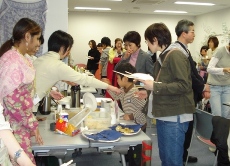 | 都筑多文化・青少年交流プラザ1周年を記念した「プラサまつり」が、2009年3月15日(日)の午前10時から午後2時半まで開催され、たくさんの人たちで賑わいました。その日の様子をごらんください。 ステージでは、華道の実演に続き、「つづきMYプラザ」の愛称を考えた礒部さんの表彰式。65点の応募から選ばれただけに、わかりやすくておシャレなネーミングですね。二胡・クラリネット・キーボード・トロンボーン演奏、ファッションショーも国際色豊かに繰り広げられました。 食文化体験コーナーでは、エジプト・台湾・インド・韓国・スペイン・フィリピン・ドイツ7ヵ国の料理やお菓子の試食ができました。お国自慢の料理やお菓子を全部食べても、わずか100円! 書道・折り紙・生け花・茶道など日本文化を体験するコーナーでは、お茶を珍しそうに飲んでいるインド人母子が印象的でした。紅茶の国のインド人に、抹茶はどうだったのでしょう。(2009年3月HARUKO 記) |