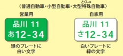 日本のトラック車両数はおよそ810万両(平成20年度)。そのうち白ナンバーは82.8%で、緑ナンバーは17.2%にすぎない。 営業用と自家用の区別は、ナンバープレート(左)を見ればすぐわかる。緑のプレートに白い文字が緑ナンバー、白いプレートに緑の文字が白ナンバーだ。宅配便などはずべて緑ナンバーだから、緑ナンバーの方が断然多いだろうと思っていたが、意外にも自分の会社の荷物だけを運んでいる自家用トラックの台数が多い。 でも輸送トン数でくらべると、数字は逆転する。営業用が59.5%、自家用は40.5%。大会社の製品は、すべて自家用トラックで運んでいると思いがちだが、効率面などから業者に委託する会社が年々増え、緑ナンバーの割合が多くなっている。 ちなみに、緑ナンバーの平仮名は「あいうえかきくけこを」、自家用は「さすせそたちつてとなにぬねのはひふほまみむめもやゆらりるろ」レンタカーが「われ」。なぜか「お・し・へ」は使われてない。ナンバープレートをしげしげと見ることもなかったが、渋滞にはまった時などに観察すると面白いかもしれない。