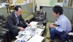 港北区新横浜2丁目。新横浜駅から徒歩6分の「トラック総合会館(左)」の中にある。スケートセンターに隣接する7階建てのビルだ。 神奈川県トラック協会は、横浜北・川崎・鶴見・横浜中・横浜南・横須賀三浦・湘南・平塚・秦野伊勢原・小田原・相模と、11の地区支部に分かれている。都筑区の会員が属しているのは、横浜北地区支部第3分会。 訪問する前は、トラック協会が何をしているのか、まったく分からなかった。トラックのメーカーは日野・いすゞ・三菱ふそう・UDトラックス(旧日産ディーゼル)などいくつか知っているが、どうも、メーカーの集まりではなさそうだ。 高橋さんは、その疑問にていねいに答えてくれた。