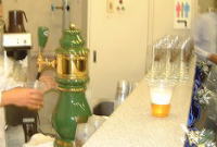 会社内は見学が自由にでき、会社の仕事内容の説明や、機械の説明をしてくださる方がそれぞれの部屋にいて、皆さん熱心にお話を聞いていました。 また、こちらの施設はテクノロジーセンターなので、さまざまな実験をする機械があって、これをラボツアーとして、決まった時間に説明をききながら見学できるツアーもありました。12時になると1階の奥にある大きな部屋に、ビュッフェ形式で、ドイツ風軽食と飲み物が用意されました。ゆでたじゃがいも、サーモンの焼いたもの、サラダ、ケーキなどのドイツ料理が並び、取り皿に思い思いに取っていきました。 飲み物は、ジュース、赤ワイン・白ワイン、そしてドイツビールが飲み放題で、皆さん飲み物片手に、おいしい食事を味わっていました。 12時半からは、会社説明かラボツアーに参加した人に配られた抽選券による抽選会がありました。みんな何が当たったのかな私の友達などは「あそこって、車の会社じゃないの!?」なんていう人もいるくらい、何をしている会社なのか知らなかった方も多くおられたようです。 しかし、今日会社内も自由に見学させていただき、仕事内容も聞く事ができて「開かれたな企業」というイメージをもった方も多いのではないでしょうか? また、ドイツ料理を振る舞っていただいたり、とても楽しい雰囲気で、身も心も温まった一日でした。 (レポーター Rika) |