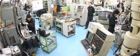 実際に研削している現場を見せてもらった。社員ひとりひとりが、人がやらないことをやろうとするスピリッツが旺盛だという。たとえば、穴の直径10oの場合は、深さは30oまでが普通だが、イシイ精機では50oの深さのものまで手がける。 ここでは、すべて先進的な仕事を扱っている。たとえば記憶媒体のメモリーには、8インチ、5インチ、3.5インチなど新製品がどんどん開発される。大量生産をするためには金型が必要だ。その金型を作るための工作機械を担っているからだ。