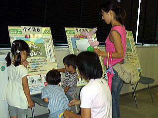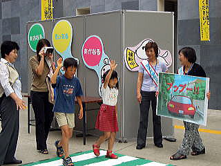 | 7月26日 都筑区交通安全対策協議会主催の 夏休み交通安全フェスタが行われました 台風の中にもかかわらず沢山の親子づれで賑わいました 交通安全クイズラリーや夜光反射材の体験、交通安全アニメの見学などに チャレンジして「じゅもんカード」をもらおう! カードを4枚集めたら、宝箱コーナーに行って「じゅもんカード」をわたそうね! 宝箱の中のものをもらえるよ |