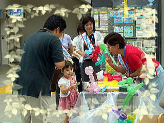 | 1階・6階のイベント会場ではボランティアの 「都筑交通安全母の会」の皆さんの協力のもと 朝早くから会場作りが始まった |