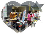 | チャイルドシートの体験コーナーも ありました。 140cmまで、必要なんですって! |