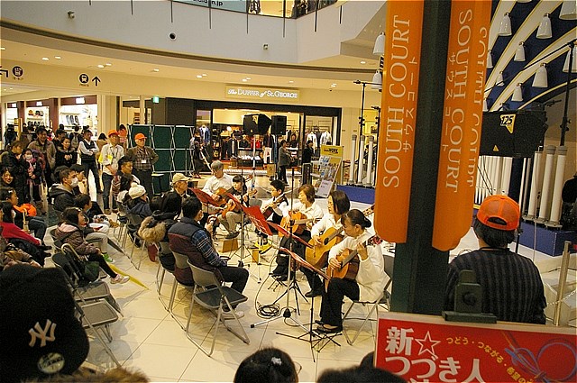 その後は、ギターアンサンブル、キッズジャズダ ンスなど多彩なイベントが入れ替わり行われ、多くのお客様が立ち止まって声援を送っていました。 |