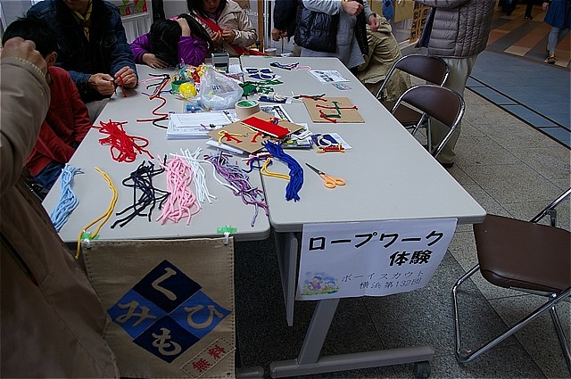 ボーイスカウトの皆さんが、ロープの本結びなどカラフルなロープを使い、ゆっくりと丁寧に結びの手順を指導されておりました。