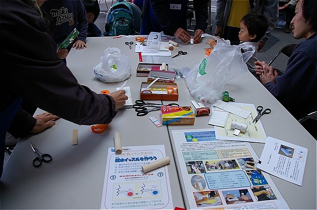 牛乳パックでホイッスルの作り方を親子でチャレンジしておりました。