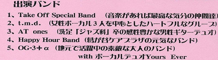 | フィナーレはジョイント曲 「世界に一つだけの花」 をお客さんと出演全員で合唱しました。 | ||||||||||||||||||||||||||||