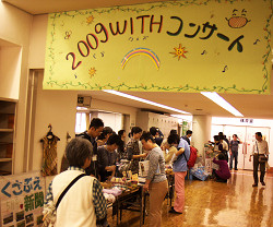 | 今回初めてのコラボレーションで、地域の各社会福祉施設が、それぞれの作業所の生産品を出店しました。商業施設などでも販売しているので見かけたらよってみてください。 都筑ブランドの芋焼酎“夢のつづき”は楽天でインターネット販売もしています。 |