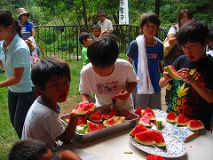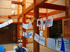 | お楽しみのスイカわり | おいしいな〜 | みんなの書いた絵を貼り出した! |