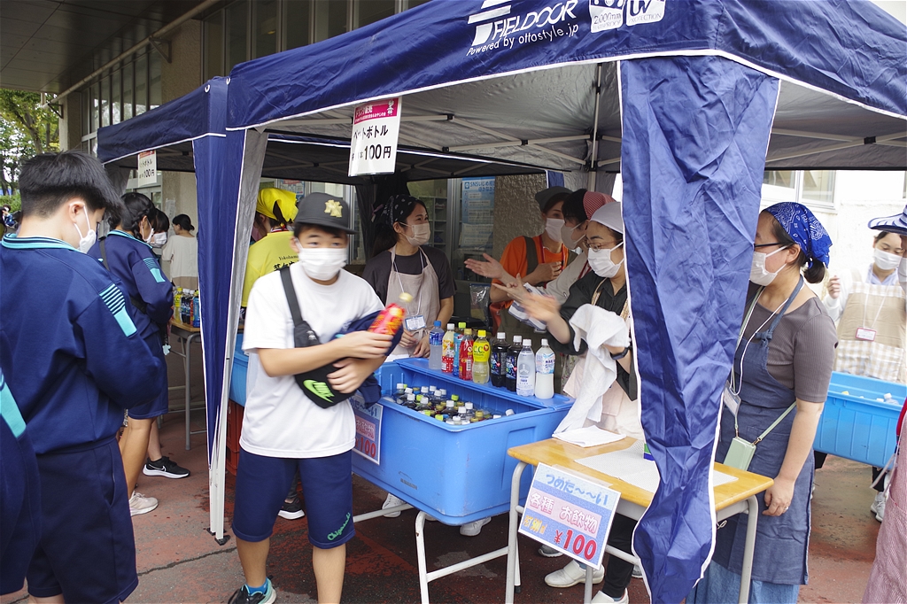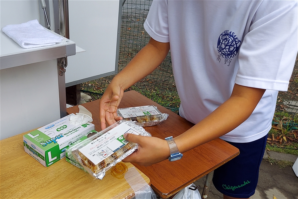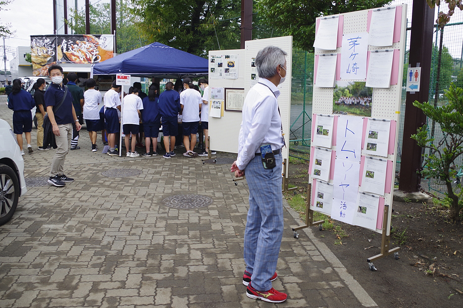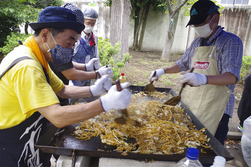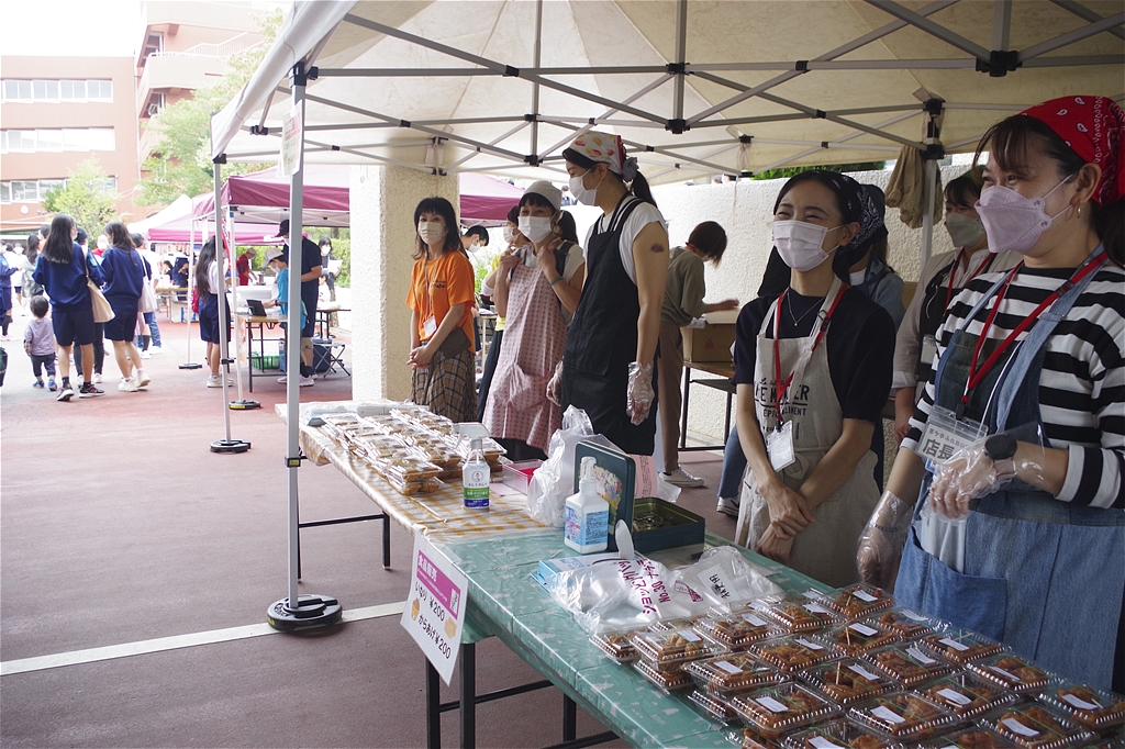 | 今回のふれあい祭は、規模を縮小し来場者も生徒とその保護者に限定しての開催との事。それでも凄い混みようであった。初めて模擬店に参加し「餃子のキッチンカー」で餃子の焼き上げをされた方は3時間休む暇なし状態であった。販売を手がけるスタッフ(生徒)の皆さんも同様で、仕事の大変さと責任感や充実感を体験され、いい思い出になったことでしょう。頑張れ新一年生! |