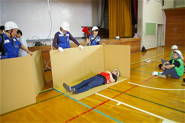 | この防災訓練は拠点の運営委員会メンバーと学校や役所関連部門のみで実施 |